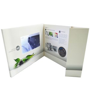 Custom soft cover A4 size 4.3” business card with lcd screen insert and flyer pages inside